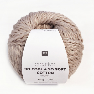 So Cool+So Sof Cotton Chunky - объемный мягкий хлопок с необычной волнистой структурой доставит Вам особое тактильное удовольствие при создании Вашего любимого летнего свитера или объемного жилета, т.к. обладает высокой эластичностью и бархатистостью. Натуральные цвета, идеально сочетающиеся между собой, позволят разыграться Вашей фантазии при создании кардигана в полоску или уютной шали для прохладных вечеров на природе.